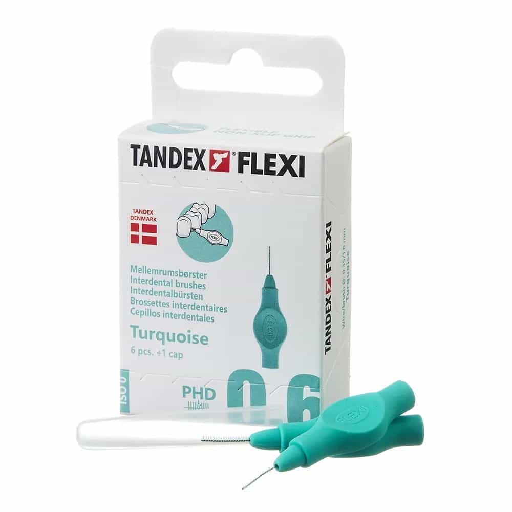 TANDEX FLEXI Original est une série de brossettes interdentaires recommandées par les dentistes et les hygiénistes dentaires. Des études scientifiques montrent que les brossettes interdentaires réduisent efficacement la plaque entre les dents. Par conséquent, ces brosses sont une partie importante des soins dentaires quotidiens. Cette série est disponible en 11 tailles différentes – vous pouvez donc toujours trouver les tailles qui correspondent exactement à vos espaces dentaires. TURQUOISE est la plus petite brosse interdentaire – parfaite pour les espaces interdentaires les plus étroits.
