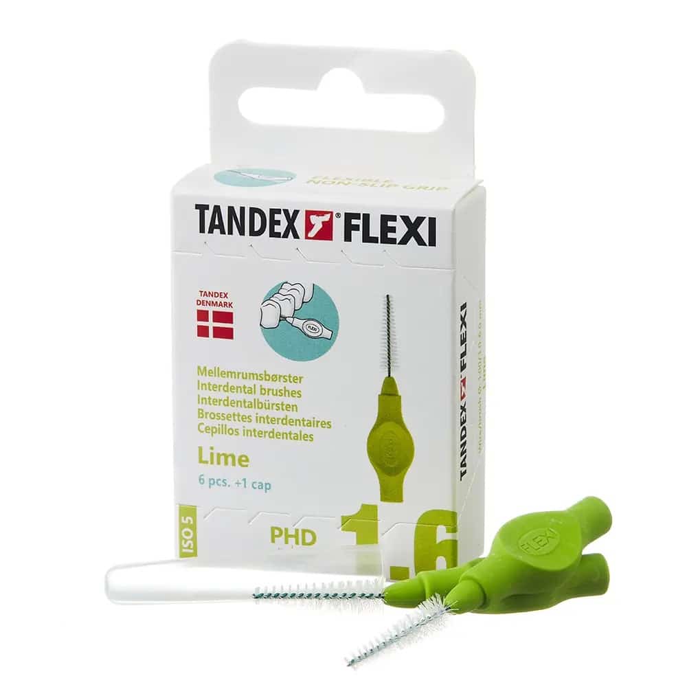 TANDEX FLEXI est une série de brossettes interdentaires recommandées par les dentistes et les hygiénistes dentaires. Des études scientifiques montrent que les brossettes interdentaires réduisent efficacement la plaque entre les dents. Par conséquent, ces brosses sont une partie importante des soins dentaires quotidiens. Cette série est disponible en 11 tailles différentes – vous pouvez donc toujours trouver les tailles qui correspondent exactement à vos espaces dentaires. VERT est une brosse interdentaire conique – parfaite par exemple pour les appareils dentaires.