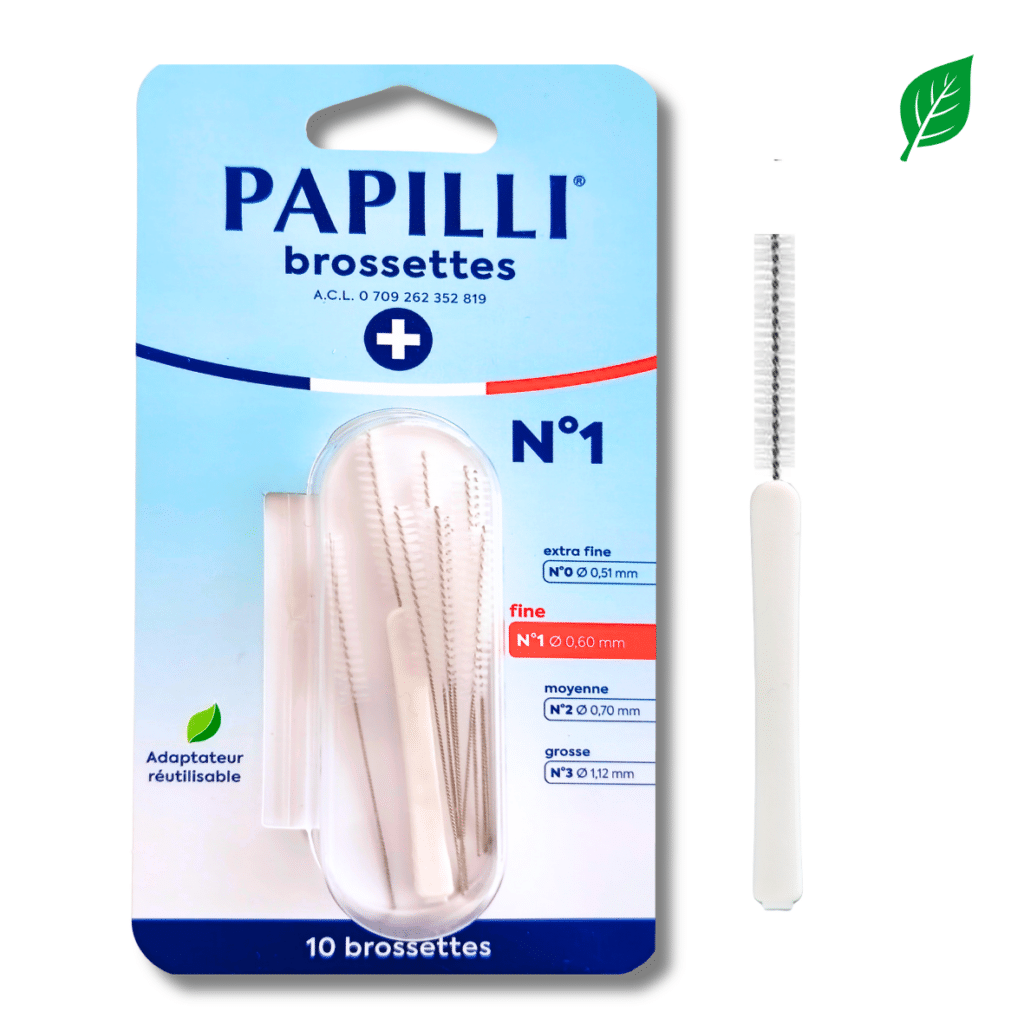 La Papilli Brossette n°1 fine convient pour des espaces interdentaires serrés.